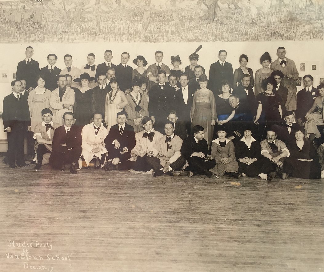 Studio Party at Van Sloun School, San Francisco, CA December 27, 1917 John Dominique Middle Row, 4th from the left.